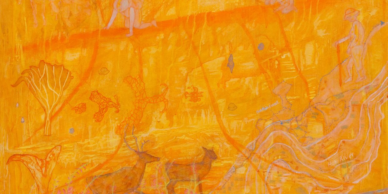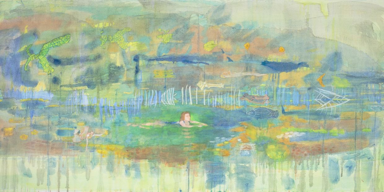 おい茂るサラウを掻き分けて登っていった森の奥に、突然現れた美しい青紫色の湖。その岸辺から岸辺まですいすいと泳いでいる女性を見た。あっ!déjà vu(既視感) 夢で見た事が現実に起こっている。湖を自由に泳ぐ女性は私ではないかと湖岸に立って見続けた。